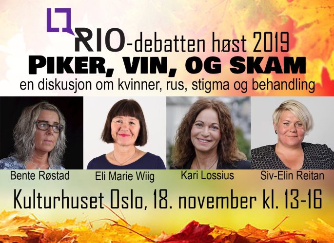 Rio inviterer politikere til Rio-debatten høsten 2019. Tid: 18.11.2019 kl. 13.00 - 16.00 Sted: Nye kulturhuset i Oslo Informasjon om arrangementet Kvinnerollen på rusfeltet er stigmatisert og kvinners opplevelse av rusproblemer er ofte preget av skam. Dette medfører flere problemer. En del kvinner med rusproblemer forsøker å skjule problemene sine, da oppleves skammen uoverstigelig. Dette … Fortsett RIO-debatten høst 2019: «Piker, vin og skam»